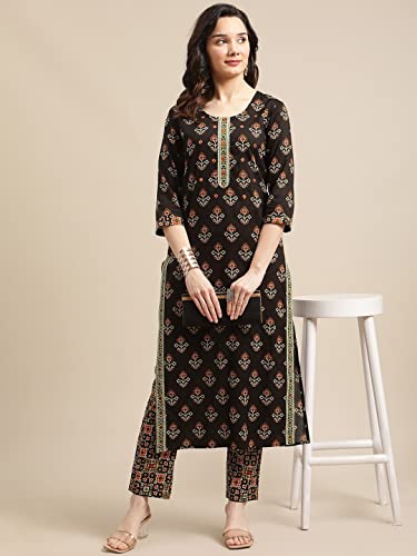 Kurta - Set da donna a tunica indiana, in cotone o rayon kurti con palazzo, Nero e oro., X-Large