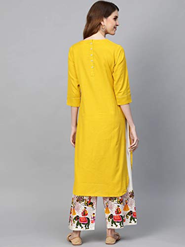 Kurtis set da donna tunica indiana top cotone o rayon kurta con palazzo set partito usura, Giallo senape-1, Large