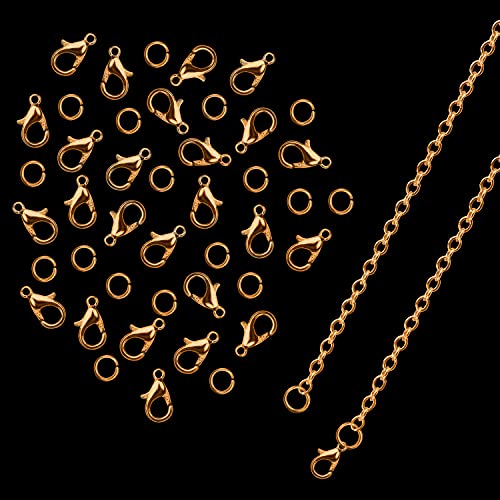KIT CREAZIONE GIOIELLI: In questo set sono inclusi tutti i materiali di cui avrai bisogno per iniziare a creare collane a catena e bracciali. All'interno troverai catena collana dorata da 1,5 mm della lunghezza di 10 m. È realizzata in metallo placcato ferro di alta qualità, resistente. Sono inclusi anche 30 fermagli aragosta in metallo dorato con clip e 30 anelli divisi dorati. Questi componenti metallici sono lisci e leggeri, resistenti alla ruggine, allo sbiadimento e all'ossidazione.