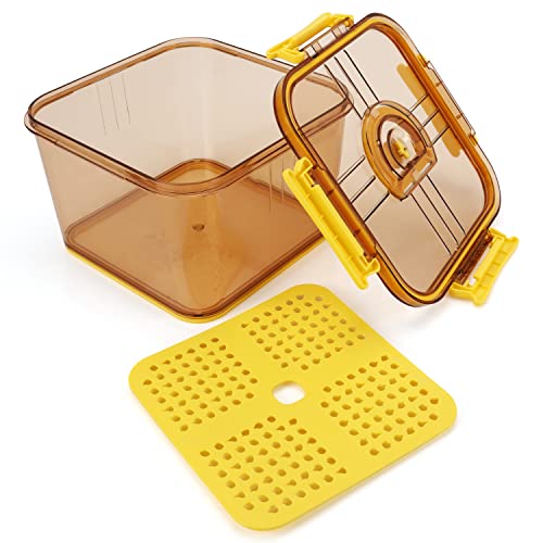 SCATOLA DI STOCCAGGIO ALIMENTARE: Questo robusto vassoio organizer da cucina giallo è privo di BPA e realizzato in plastica per alimenti. Il contenitore misura L20 x L20 x A12,7 cm e può contenere 2500 ml. È di colore giallo traslucido, il che significa che puoi facilmente identificare cosa c'è all'interno del vassoio. La nostra scatola è ottima per risparmiare spazio e conservare il cibo.