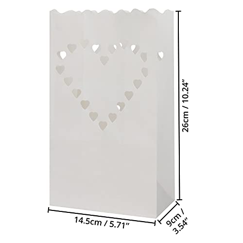Kurtzy Lanterne di Carta Bianche (20pz) - Sacchetti Ignifughi per Candele - Lanterna Porta Candele Design a Cuore per San Valentino, Fidanzamento, Ricevimenti e Natale - Lanterne Portacandele