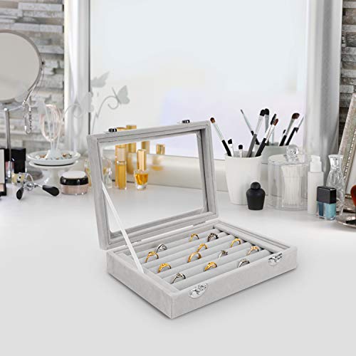 Kurtzy Organizer Gioielli Espositore Anelli in Velluto Grigio con 7 Livelli - Porta Anelli Espositore con Coperchio in Vetro Trasparente - Espositore per Anelli, Orecchini e Gemelli