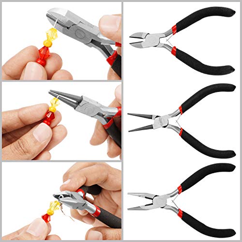 PINZE PER BIGIOTTERIA PER REALIZZARE E RIPARARE GIOIELLI: In questo set di perline per creare gioielli ci sono tre paia di pinze per gioielli. Troverai un paio di pinze a becco piatto da 13 cm con una dimensione della testa di 3 cm, pinze da taglio laterali da 12 cm con una dimensione della testa di 2 cm e pinze di precisione a testa tonda che misurano 13 cm con una dimensione della testa di 3 cm.