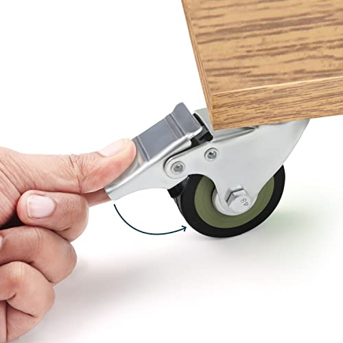 MECCANISMO DI DOPPIO BLOCCO: Premere il pedale del freno per impedire la rotazione delle ruote antiscivolo. Ciò semplifica il posizionamento dei mobili/banchi da lavoro e ne impedisce lo spostamento, inoltre puoi spostare senza sforzo i mobili e pulire sotto. Il meccanismo dual-lock blocca contemporaneamente sia la ruota che il cuscinetto girevole, fondamentale per la sicurezza. Ruote girevoli utili in case, scuole, negozi, garage, banchine o persino ospedali ed ad uso industriale.