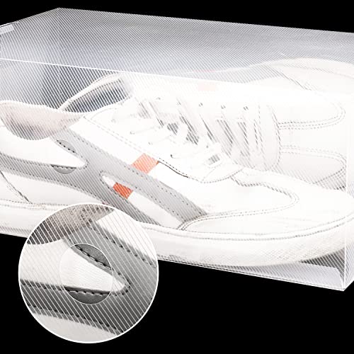ORGANIZER PER SCARPE: Queste 10 porta scarpe da armadio sono perfette per la conservazione e l'organizzazione di scarpe. Arrivano appiattite, con istruzioni, e sono molto facili da assemblare. Una volta assemblata ogni scatola scarpe misura 31,7 x 12,8 x 20 cm. Possono conservare scarpe da uomo fino al n° 45 UE e scarpe femminili fino al n° 43 UE. Quando appiattite, i contenitori per scarpe trasparenti misurano 45 x 28 x 0,2 cm.
