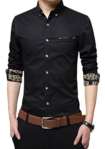 Kuson - Camicia a quadretti, a maniche lunghe, in cotone, aderente, casual, sottile, taglia 3XL, colore: nero