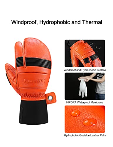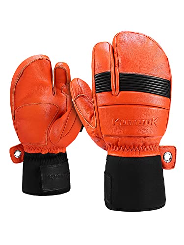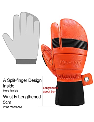 KUTOOK Guanti Sci Invernali Snowboard Neve Antivento Impermeabile Termico 3M Thinsulate per Ciclismo Sport Invernali Uomo Donna(Orange,S)