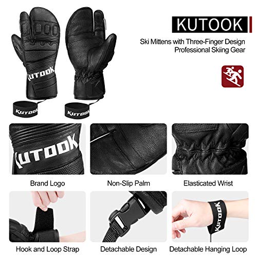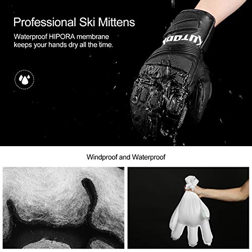 KUTOOK Guanti da Sci e Snowboard Professionale Impermeabili Antivento e Resistente per Sport Invernali da Uomo(Nero,XL)