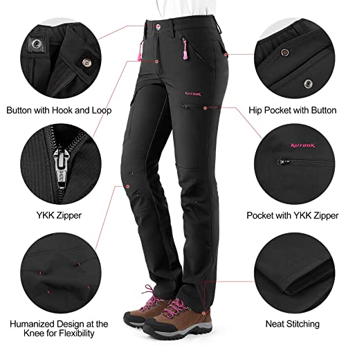 KUTOOK Pantaloni Escursionismo Donna Invernali Pantaloni Hiking Softshell Impermeabile da Arrampicata Trekking Sci Neve Outdoor,XXL