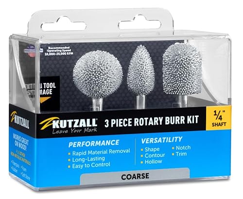 Kutzall Set di Frese Rotanti da 3 Pezzi - Albero da 1/4", Grana grossa - Accessorio Falegnameria per Attrezzi Bosch, DeWalt, Makita, Milwaukee - Carburo di Tungsteno Strutturato
