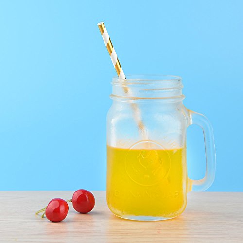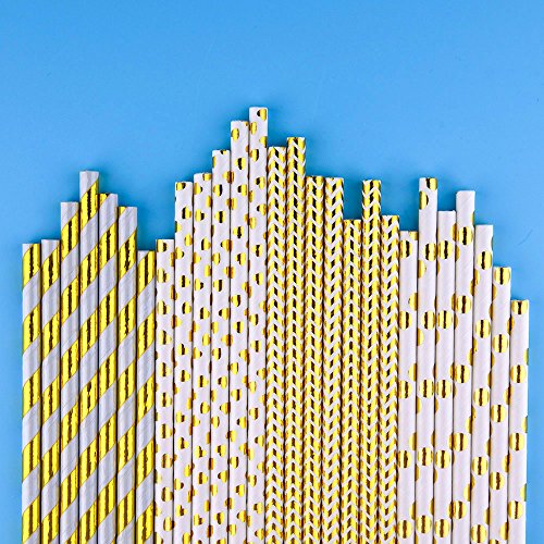 KUUQA Cannucce di carta con striscia a forma di stella a forma di cuore per feste di compleanno, matrimonio e baby shower 60 Pezzi Oro e Bianco