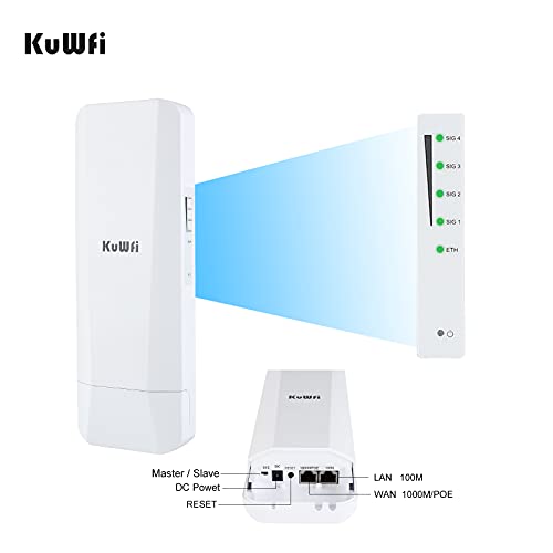 KuWFi Kit CPE Esterno Wireless, IP65 Impermeabile 2-Pack 900 Mbps Outdoor Point-to-Point Wireless Bridge Supporto 2-3 km di Estensione WiFi a Lungo Raggio con Porta Gigabit Rj45