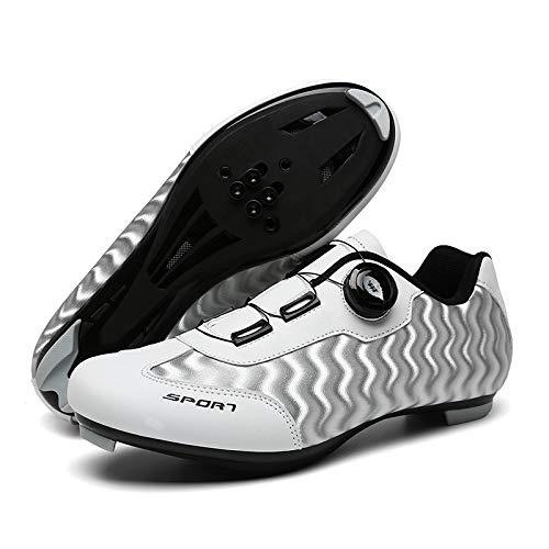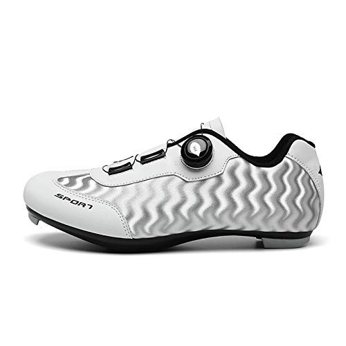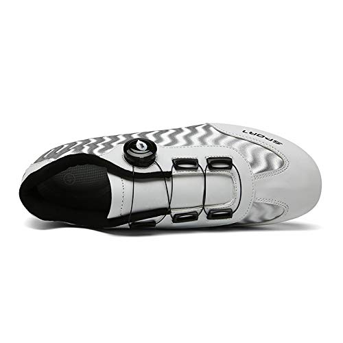 KUXUAN Scarpe da Ciclismo su Strada da Uomo,Compatibili con Mountain Bike con SPD/SPD-SL e Tacchette di Bloccaggio e Fibbia a Rotazione Rapida,White-7UK=(255mm)=41EU