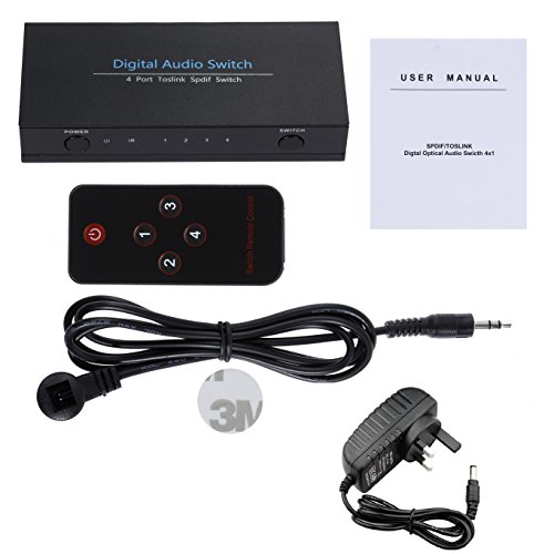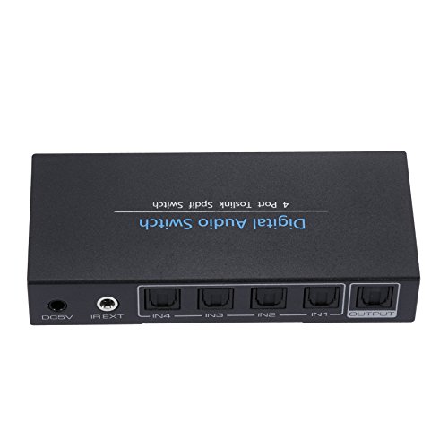 KUYIA SPDIF/Toslink DigitalSplitter, Splitter/Switcher audio ottico con telecomando IR (splitter 1-4) ...