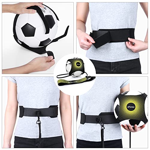 KUYOU Allenatore da calcio da solo, con cintura regolabile in vita, controllo dell'aiuto, allenamento di calcio, allenamento per bambini, principianti, kick off (giallo)