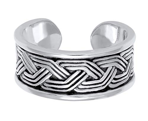 Kuzzoi Anello da Uomo (10 mm) Aperto, Regolabile, Anello Massiccio da Uomo in Argento Sterling 925 dall'aspetto Vintage, Anello a Fascia con Ornamento in Rilievo, Superficie ossidata