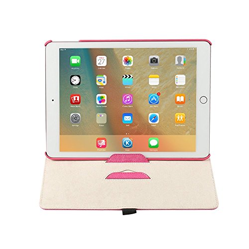 Kvago, cover per Apple iPad Pro 9,7'', custodia protettiva con supporto girevole a 360° e portapenne, ultra sottile, elegante, in pelle sintetica, con funzione automatica di attivazione/disattivazione schermo rosa Pink