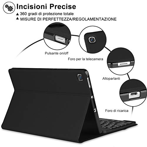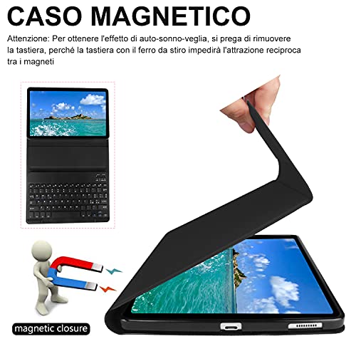 KVAGO Custodia con Tastiera per Samsung Galaxy Tab S6 Lite 10.4, Tastiera [Layout Italiano] Bluetooth Rimovibile con Cover Ultra Sottile per Samsung Tab S6 Lite 2020 SM-P610/ P615, Nero
