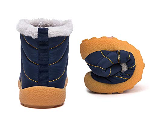 KVbaby - Stivali da neve per bambini, caldi, invernali, con pelliccia, foderati, antiscivolo, stivali invernali, (Giallo/Blu), 36 EU Étroit
