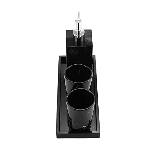 KVSERT Articoli da in marmo Texture nero 4 pezzi accessori da in resina dispenser portaspazzolino dispenser sapone