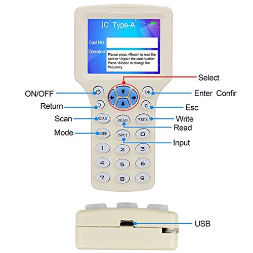Supporta la frequenza di scrittura in lettura: 125KHz, 250KHz, 375KHz, 500KHz, 625khz, 750kHz, 875KHz, 1000KHZ, 13.56MHz (ISO1443A/B), supporta schede Prox.