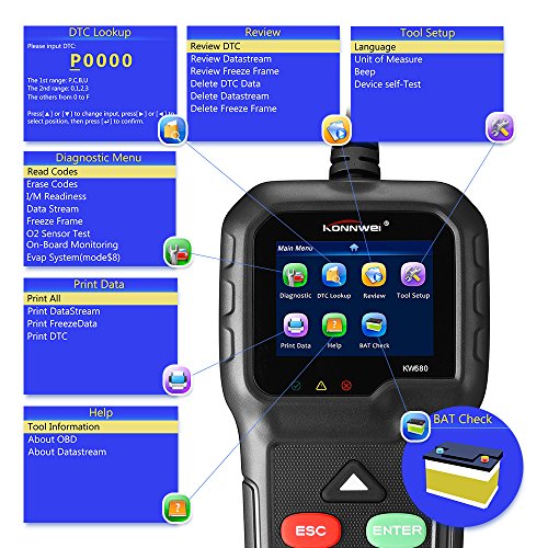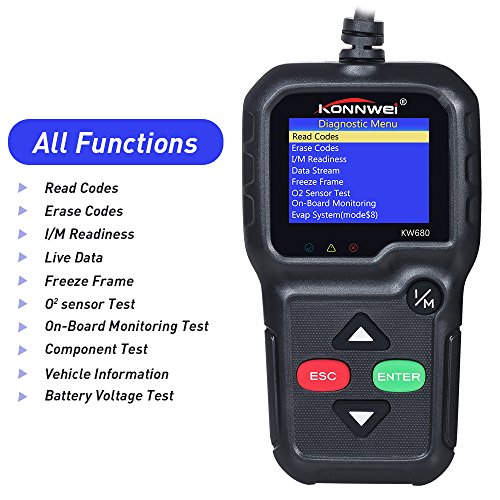 KW680, scanner diagnostico OBD2, attrezzo per l'auto, funzioni complete, lettore di codici per guasto al motore dell'auto, strumento di scansione per controllo luce motore con test sensore O2 e test del monitor di bordo