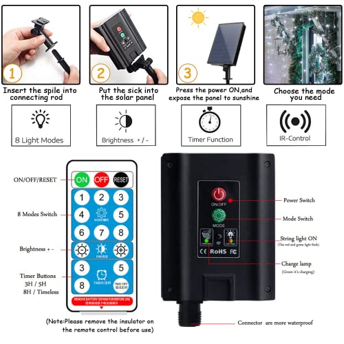 ✨【 8 modalità 】Le luci del Solare ghiacciolo a LED hanno 8 modalità di illuminazione: combinazione, in onde, sequenziale, slo-glo, flash a inseguimento, dissolvenza lenta, flash scintillante, acceso fisso.