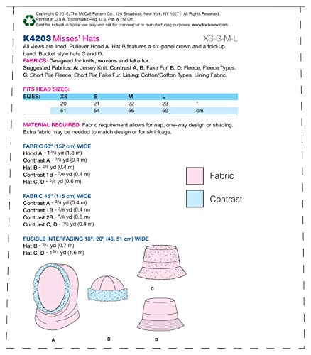 KWIK-SEW PATTERNS Kwik Sew Pattern K4203OS, Misse Cappelli, Multi/Colore