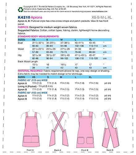 KWIK-SEW PATTERNS K4210OS Unisex Grembiuli, Multicolore, XS - XL