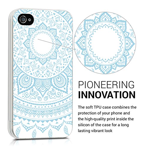 Kwmobile Apple iPhone 4 / 4S Cover - Back Case per Apple iPhone 4 / 4S Custodia in silicone TPU trasparente blu chiaro/bianco