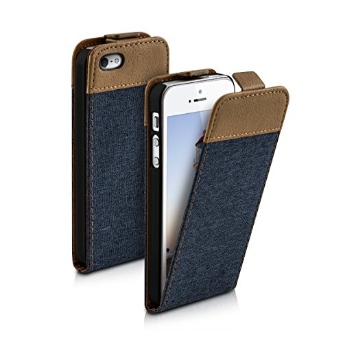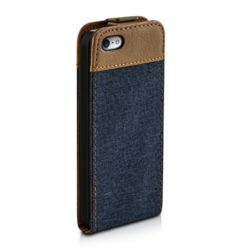 Kwmobile Apple iPhone SE / 5 / 5S Cover - Custodia Flip Verticale in Simil Pelle e Tessuto - con Linguetta calamita per Apple iPhone SE / 5 / 5S