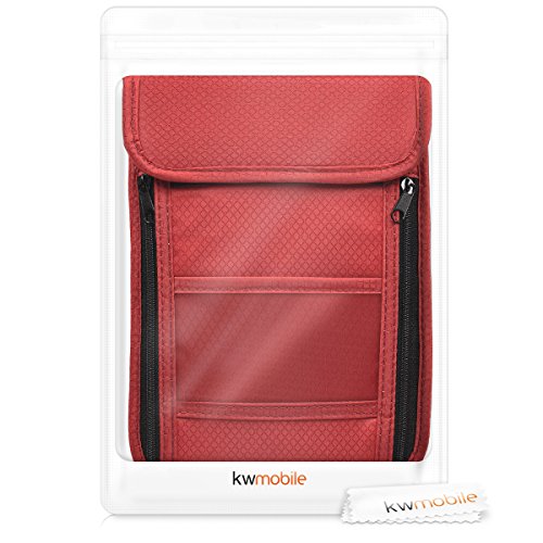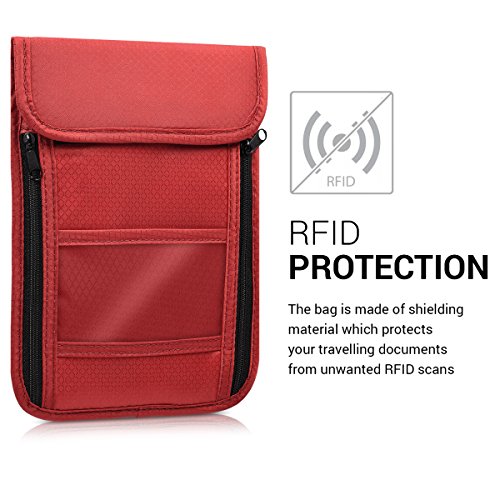 Kwmobile borsello da viaggio anti-RFID porta documenti - porta documenti a tracolla con blocco RFID - borsa portafoglio per cellulare biglietti pass - tasche multiple rosso scuro