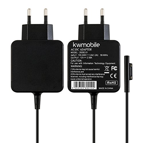 Kwmobile Caricabatteria Compatibile con Tablet Microsoft Surface PRO 3/PRO 4/PRO 2017 - Cavo di Ricarica 12V 2.58A (31W) - Cavetto Carica Tab Pad con Presa Europea