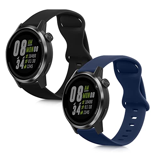 Kwmobile 2X Cinturino Ricambio Compatibile con COROS Pace 2 / Apex (42mm) - Cinturino Silicone 17,2-23,8 cm Nero/Blu Scuro - Taglia L