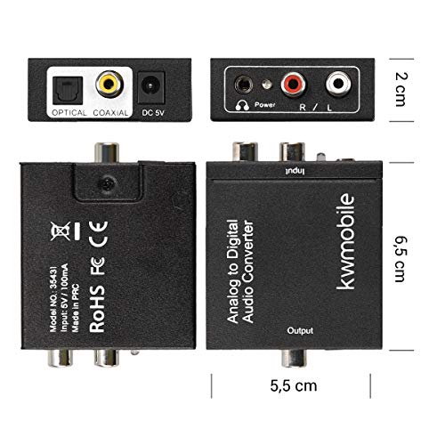Kwmobile convertitore audio analogico digitale - da analogico a digitale presa jack 3,5mm RCA uscite Toslink/SPDIF coassiale ottico con cavo USB
