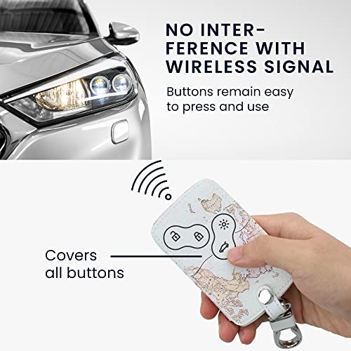 Kwmobile Coprichiave Compatibile con Renault con 4 tasti (solo Keyless Go) - Cover Chiave - Guscio Protettivo Copri Telecomando Auto Similpelle - Mappa del mondo
