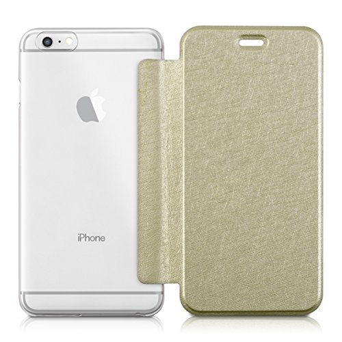 Kwmobile Cover per Apple iPhone 6 Plus / 6S Plus - Custodia Protettiva apribile a Libro Case Stile Flip in Oro Trasparente