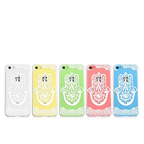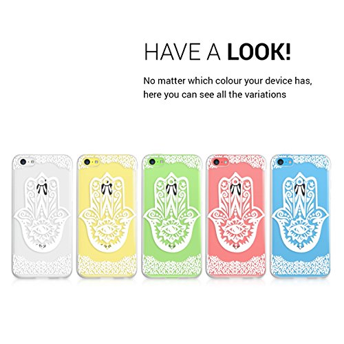 Kwmobile Cover per Apple iPhone 5C - Custodia trasparente per cellulare - Back cover cristallo in plastica rigida Design Mano di Fatima bianco trasparente