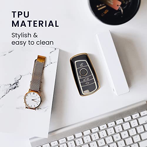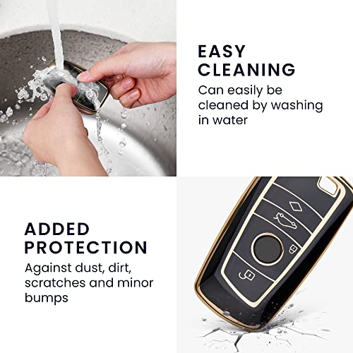 FLESSIBILE ED ELASTICO: la custodia protettiva coprichiave in morbido silicone TPU è un guscio flessibile che si adatta perfettamente alla chiave auto. La cover è antiscivolo e protegge da sporco e graffi. Di colore: nero / oro.