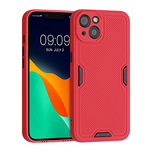 Kwmobile Cover Compatibile con Apple iPhone 13 / iPhone 14 - Custodia Semirigida con Rilievo Silicone TPU - Design Robusto nero/rosso