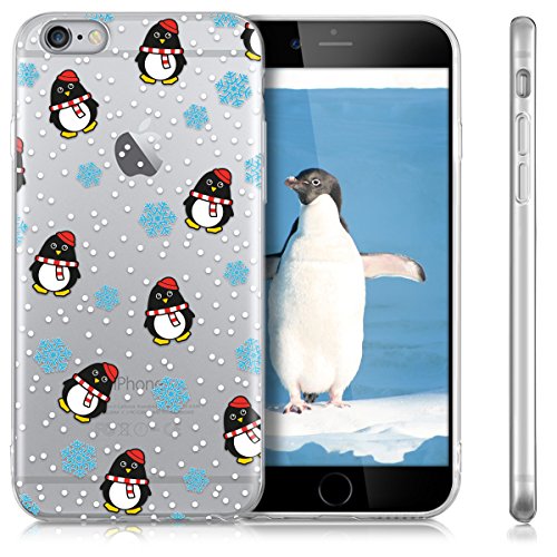 Kwmobile Cover Compatibile con Apple iPhone 6 / 6S - Custodia in Silicone TPU - Backcover Protettiva Cellulare Pinguino Nero/Blu Chiaro/Trasparente