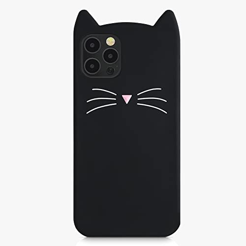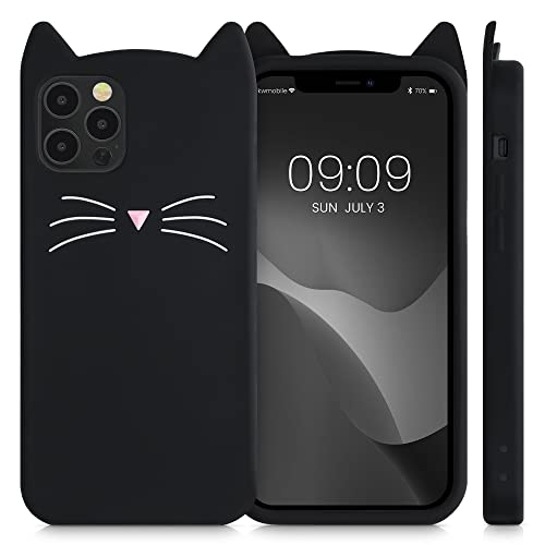 Kwmobile Cover compatibile con Apple iPhone 12 / iPhone 12 Pro - Custodia Cover in silicone TPU - Copertina protettiva Back Case Backcover - gatto nero/bianco