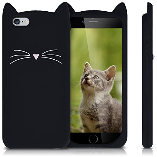 Kwmobile Cover Compatibile con Apple iPhone 6 / 6S - Custodia Cover in Silicone TPU - Copertina Protettiva Back Case Backcover - Gatto Nero/Bianco