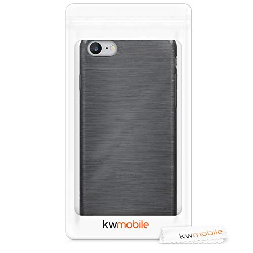 Kwmobile Cover Compatibile con Apple iPhone SE (2022) / SE (2020) / 8/7 - Custodia in Silicone TPU - Cover Protettiva Soft Case - Alluminio Spazzolato Antracite/Trasparente