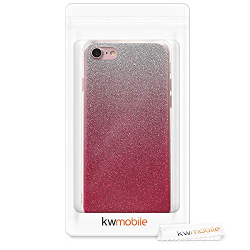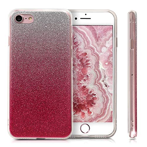 Kwmobile Cover Compatibile con Apple iPhone 7/8 / SE (2020) - Back Case Custodia in Silicone TPU Trasparente Glitter Glam Fucsia/Argento/Trasparente