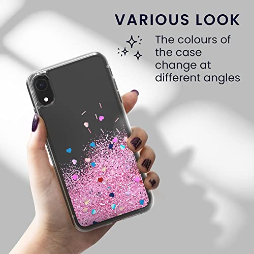 Kwmobile Cover compatibile con Apple iPhone XR- Back Cover in silicone TPU con liquido - Case trasparente e Stelline Glitter fucsia/multicolore/trasparente