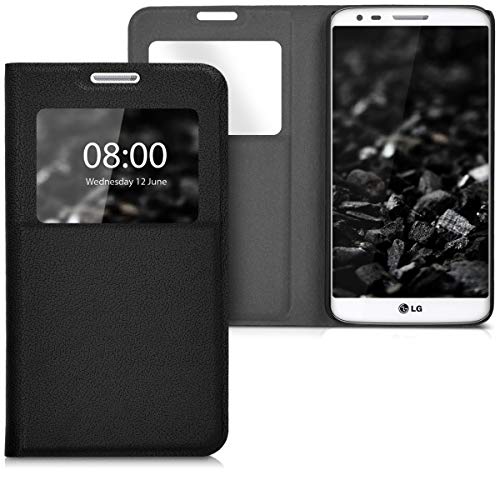 Kwmobile Cover compatibile con LG G2 - Custodia a libro con finestra di visualizzazione - Case pieghevole nero