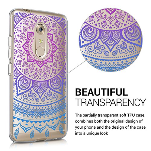 Kwmobile Cover Compatibile con ZTE Axon 7 - Custodia in Silicone TPU - Backcover Protettiva Cellulare Sole Indiano Blu/Fucsia/Trasparente