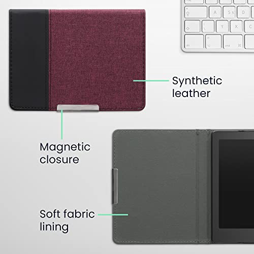 IL TESSUTO INCONTRA LA PELLE: la custodia protettiva in rosso scuro / nero veste il dispositivo e-book Reader con resistente tessuto in tela canvas con inserto in similpelle e lo mantiene al sicuro da polvere e graffi.