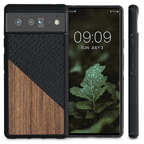 Kwmobile Cover Compatibile con Google Pixel 6 Pro - Custodia in Fibra di Carbonio e Legno - Bumper Anti Urto - Back Protection marrone scuro/nero